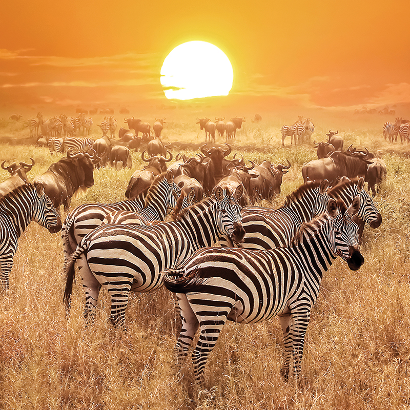 Africa’s annual Great Wildebeest Migration is the world’s largest overland animal migration. This spectacular phenomenon occurs when approximately two million